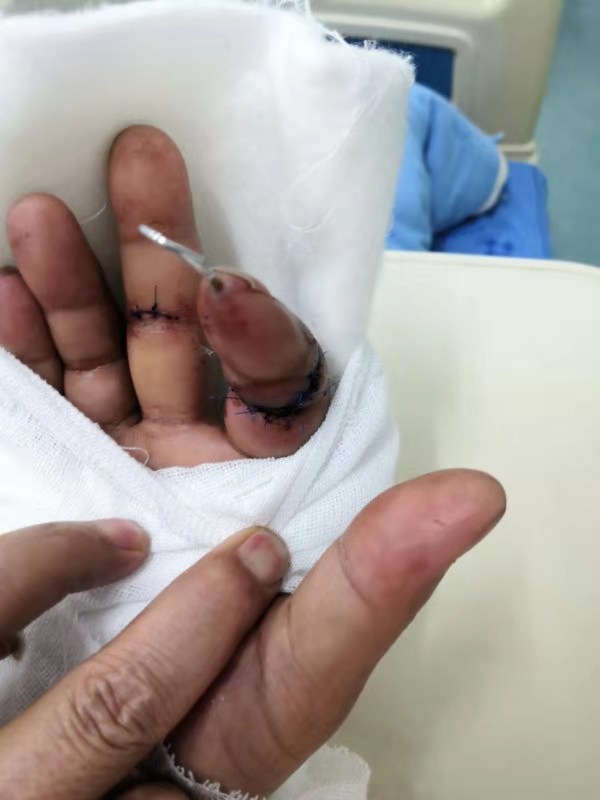 “患者斷指再植手術(shù)已經(jīng)完成10天了,目前,手指血運良好,手指顏色已經(jīng)和正常手指顏色沒有區(qū)別?!惫强乒俪:歪t(yī)生興奮地告訴小編。